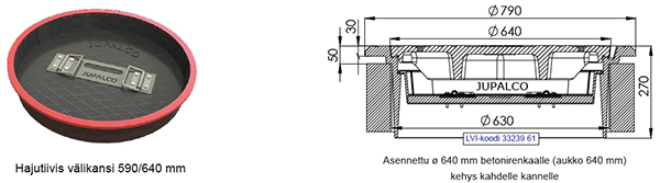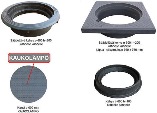 Kehys ø 640 h=115 mm VKL 2 kaukolämpö | 3329216 | 606,00 | Laipan halkaisija ø 800 mm |
