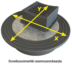 Toimitamme asennusrenkaita, joita on mahdollista asentaa ø 500, 550 ja 600 mm:n säädettävien kehyksien päälle. Kehys ja asennusrengas myydään aina settinä.