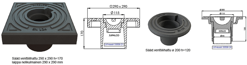 Jupalcon venttiilihatut sekä korotusrenkaat ovat kaikki rakenteeltaan EN124 normin mukaiset ja tuotteiden sovituspinnat ovat koneistetut.