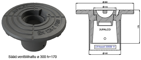 Sääd.venttiilihattu ø 300 h=170 mm + kansi ø 115 mm