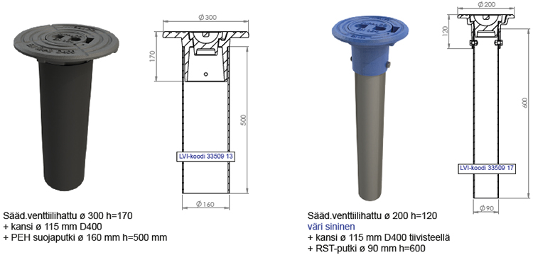 - saatavilla myös PEH suojaputkella ø 160 mm, h=500 mm