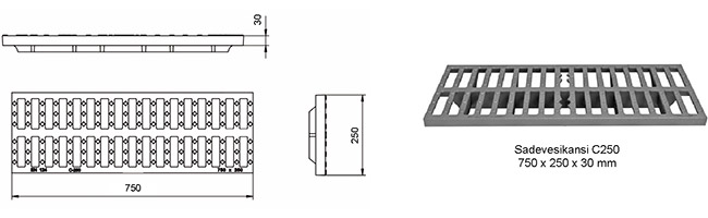 Sadevesikansi SA25C25 | 750 x 250 x 30 | C250 (25tn) | 3366639 | 195,00 |