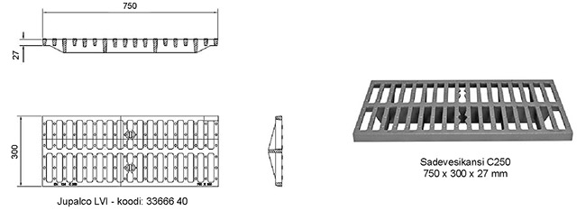 Sadevesikansi SA30D40 | 750 x 300 x 27 (Pyydä mittapiirrustus erikseen) | D400 (40tn) | 3366618 | 298,00 |