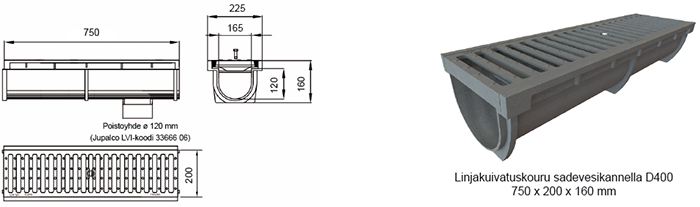 Linjakuivatuskouru VR200P Sadevesikannella D400 Poistoyhde 120 mm | 750 x 200 x 160 | D400 (40tn) | 3366606 | 205,00 |